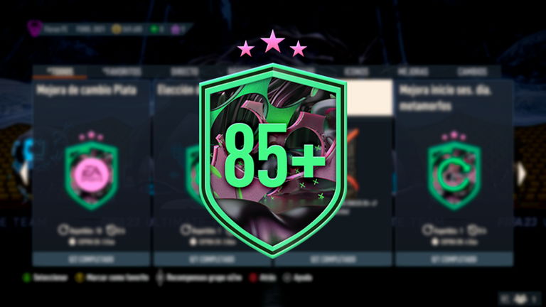 Esta es la nueva Mejora de 7x 85+. Como su propio nombre indica, contiene 7 jugadores con un mínimo de 85 de valoración. Este SBC, que se puede repetir una vez al día hasta el próximo jueves, está pensado para los que buscan los jugadores más exclusivos que se encuentran disponibles en sobres.